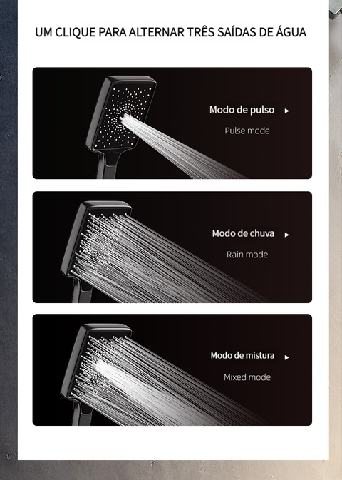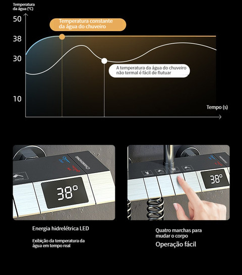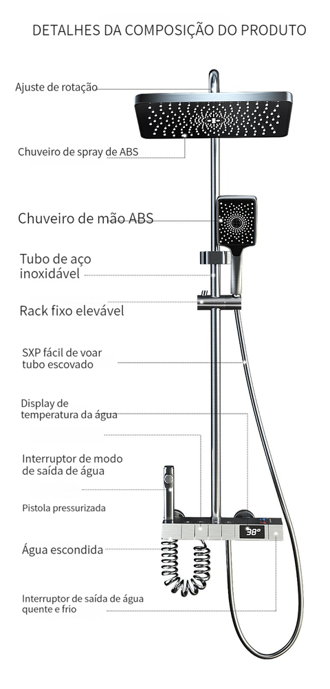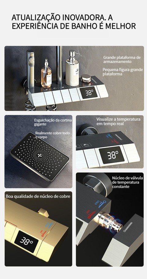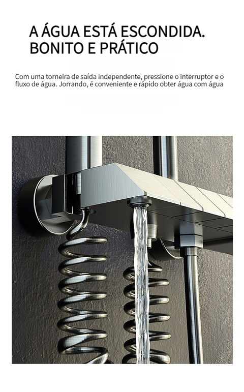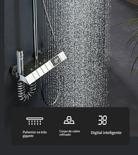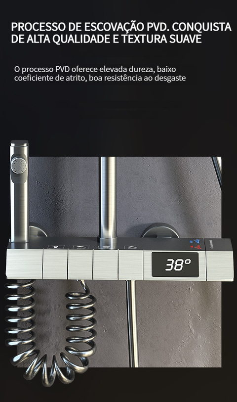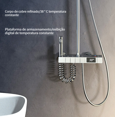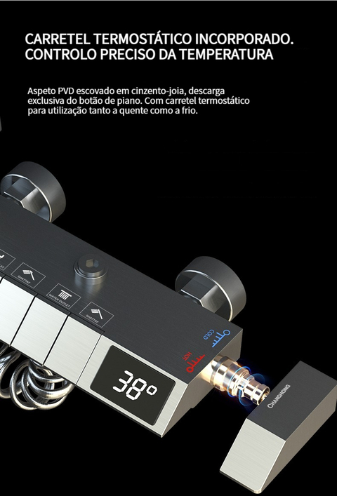 Conjunto de duche, termóstato digital inteligente, teclas de piano, quatro funções de água
